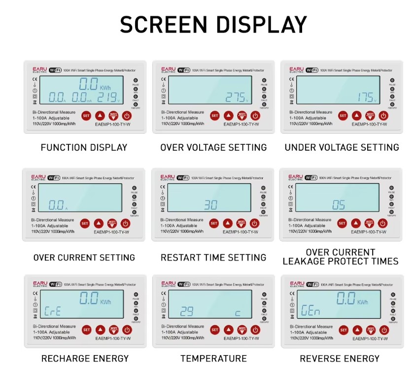 Monofazno WiFi smart dvosmjerno brojilo koristi Tuya platformu.